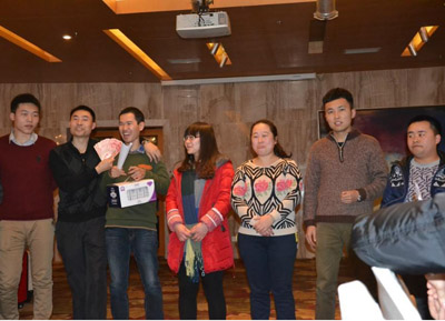 大家一路歡歌笑語,都為這次期待已久的旅行興奮不已,唱歌、玩游戲......旅途中我們也沒閑著。經過兩個多小時的路程,我們到達峨眉山市,公司為我們安排了豐盛的午餐,下午游覽了峨眉山周邊的景區(qū)。晚上公司召開了2013年第四季度銷售大會,對先進的部門以及個人進行表彰,得獎的童鞋們臉上笑開了花,沒有得獎的也要再接再厲。