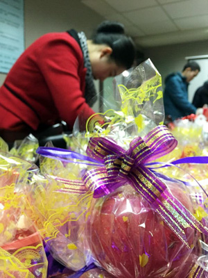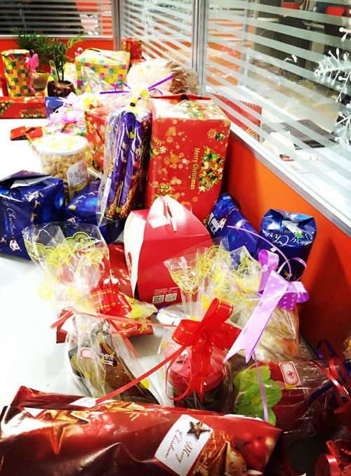 雖然圣誕節(jié)不是中國(guó)的傳統(tǒng)節(jié)日,但是這個(gè)節(jié)日卻很受大家的歡迎,因?yàn)榭鞓?lè)無(wú)國(guó)界。24日下午,同事們?cè)缭绲木桶压敬虬缫环,頓時(shí)公司一改往日的嚴(yán)肅莊重,變得活潑可愛(ài)了。同時(shí)公司送給大家的禮物也分裝好了,還有大家共同選購(gòu)的神秘交換禮物一一就位。