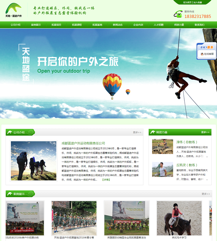 成都藍途戶外運動有限責任公司成立于2013年6月,是一家專業(yè)打造娛樂、休閑、挑戰(zhàn)為一體的戶外拓展生態(tài)露營體驗機構,擁有一批專業(yè)的教練團隊、策劃團隊和專業(yè)戶外運動設施設備。自成立以來,本著“專心、專業(yè)、專注”的企業(yè)理念,不斷優(yōu)化經營形式,提升服務質量,完善客服體系,滿足客戶需求,為企業(yè)的穩(wěn)定發(fā)展、持續(xù)增長提供有力保障。公司自主開發(fā)了包括一期:天地·藍途戶外拓展基地。