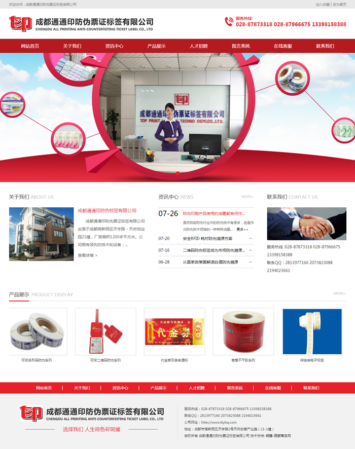 公司主要產(chǎn)品:卷筒自動(dòng)貼不干膠標(biāo)簽、可變數(shù)據(jù)防偽標(biāo)簽、紋理防偽商標(biāo)、RFID射頻標(biāo)簽、個(gè)性化防偽標(biāo)簽、二維碼標(biāo)簽、監(jiān)管碼標(biāo)簽、電子標(biāo)簽、掲開留底標(biāo)簽、 鐳射貼紙、籌碼貼膜、卡通創(chuàng)可貼膜、 PVC膜類產(chǎn)品等特種印刷及內(nèi)外貿(mào)促銷禮品等業(yè)務(wù)。