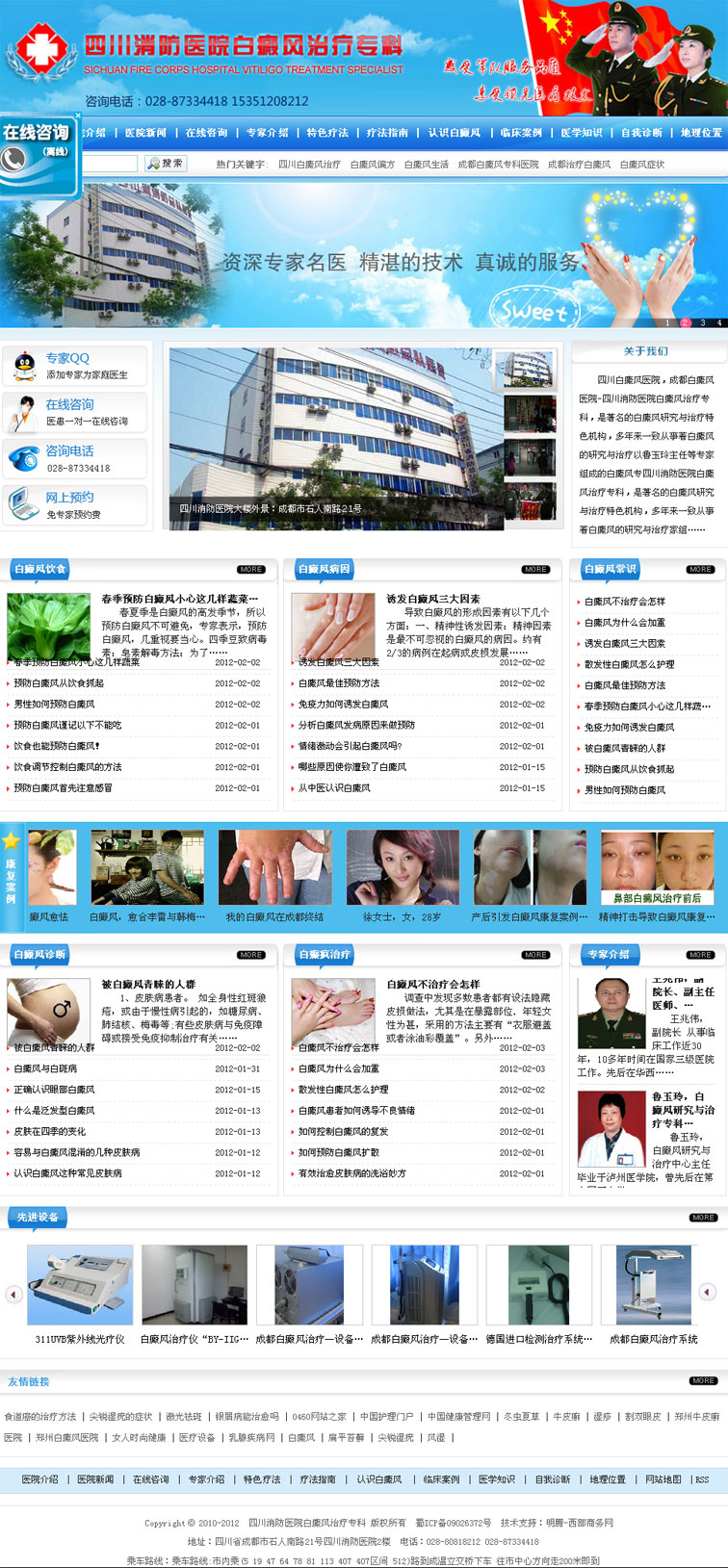 承擔著四川大學華西醫(yī)院技術輔導、第三軍醫(yī)大學成都醫(yī)學院的實習及教學任務,是四川省中醫(yī)學會白癜風技術輔導醫(yī)院,也是成都唯一的川大華西醫(yī)院輔導與技術合作醫(yī)院。先后榮獲軍部先進單位、省市區(qū)醫(yī)保定點單位、四川省優(yōu)質服務醫(yī)院示范單位。并連續(xù)15年被評為擁政愛民的先進單位、先進團單位。醫(yī)院科室齊全,醫(yī)療設備先進,醫(yī)護質量一流,深受患者朋友及社會各界的好評。