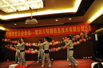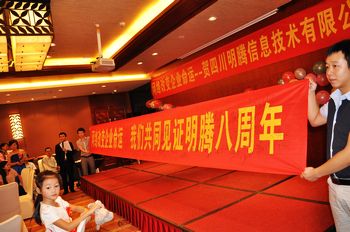 秋風送爽,丹桂飄香。在這收獲的季節(jié),我們迎來了明騰公司八周年的生日。我們滿懷喜悅的心情在這里歡聚,回首八年發(fā)展歷程,風雨坎坷我們一起走過,這是我們作為明騰人的驕傲和自豪。公司創(chuàng)辦八年以來,在管理層團結(jié)一心,員工們努力拼搏的前提下,發(fā)揚“團結(jié)、務(wù)實、拼搏、創(chuàng)新”的企業(yè)精神,以網(wǎng)絡(luò)改變企業(yè)命運為決心,使公司得到了蓬勃發(fā)展,讓員工生活水平大幅度提高,各項工作取得了巨大成績,這成績凝聚著全體員工的心血和汗水,在此,我代表公司,向大家表示最真誠的感謝,謝謝大家。