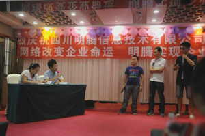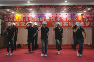 金秋送爽,丹桂飄香。在這個大家心情美麗、氣候怡人的季節(jié)里,四川明騰迎來了她九歲的生日,但對于明騰人而言,今天絕不僅僅是明騰九周年誕辰,如果說之前是耕種、是付出,那么今天是采摘、是收獲。正如姚總在開篇致辭中說“在這9年中,我們收獲了經(jīng)驗、知識和財富。明騰公司的業(yè)績年年增長,今年業(yè)績比去年同期增長了22%。9年中,我們建立了一個好的團隊。我們有英勇善戰(zhàn)的三個銷售團隊,有服務(wù)周到細致的客戶服務(wù)部團隊,有資深美工創(chuàng)意設(shè)計團隊,有技術(shù)精湛的程序開發(fā)團隊! 公司有資深的老將,也有活潑的年輕血液,這是個風(fēng)華正茂的團隊。