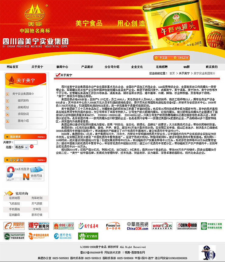 客戶概況:四川省美寧實(shí)業(yè)集團(tuán)是農(nóng)業(yè)產(chǎn)業(yè)化國(guó)家重點(diǎn)龍頭企業(yè)、全國(guó)農(nóng)產(chǎn)品加工示范企業(yè)、AAA信用等級(jí)企業(yè)、全國(guó)首家出口肉類(lèi)罐頭一類(lèi)管理企業(yè)、軍需罐頭定點(diǎn)生產(chǎn)企業(yè)和中國(guó)伊協(xié)指定罐頭食品生產(chǎn)企業(yè)。集團(tuán)下轄四川美寧、成都美寧、美寧清真、美寧神力、美寧農(nóng)牧等9個(gè)子公司。主營(yíng)罐頭食品加工涉及冷凍食品、清真食品、城市自來(lái)水供應(yīng)、豬牛屠宰、冷藏、鮮銷(xiāo)、農(nóng)業(yè)種養(yǎng)殖、貿(mào)易等多個(gè)領(lǐng)域。 “美寧”商標(biāo)為中國(guó)馳名商標(biāo)。
