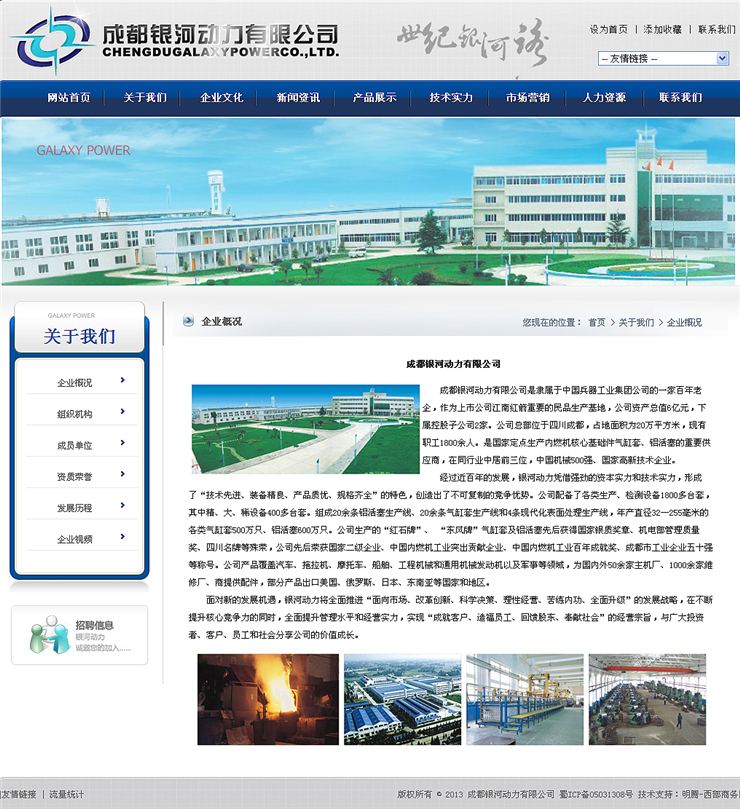客戶(hù)概況:成都銀河動(dòng)力有限公司是隸屬于中國(guó)兵器工業(yè)集團(tuán)公司的一家百年老企,作為上市公司江南紅箭重要的民品生產(chǎn)基地,公司資產(chǎn)總值6億元,下屬控股子公司2家。公司總部位于四川成都,占地面積為20萬(wàn)平方米,現(xiàn)有職工1800余人。是國(guó)家定點(diǎn)生產(chǎn)內(nèi)燃機(jī)核心基礎(chǔ)件氣缸套、鋁活塞的重要供應(yīng)商,在同行業(yè)中居前三位,中國(guó)機(jī)械500強(qiáng)、國(guó)家高新技術(shù)企業(yè)。