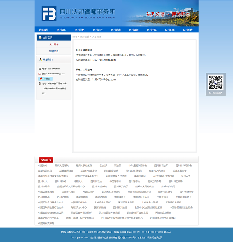 客戶概況:四川法邦律師事務(wù)所成立于2007年,是經(jīng)四川省司法廳批準(zhǔn)設(shè)立的綜合性律師事務(wù)所。本所匯聚了一批執(zhí)業(yè)時間長、法律功底扎實、精通司法實務(wù)、實踐經(jīng)驗豐富的資深律師。秉承“法乃公器、民為邦本”的執(zhí)業(yè)理念,忠于法律和事實,切實維護(hù)當(dāng)事人的合法權(quán)益,贏得了當(dāng)事人和社會各界的信任和好評。