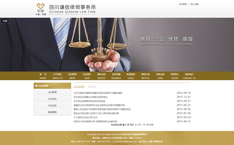 客戶概況: 四川謙信律師事務所是經(jīng)司法部核名,四川省司法廳2004年批準設立,直屬于成都市司法局的大型綜合性律師事務所,被成都市司法局授予優(yōu)秀律師事務所稱號。事務所位于成都市撫琴西路128號(成都市中級人民法院正對面),立案、訴訟、咨詢、交通等極為方便。