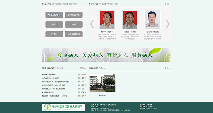 客戶概況:成都市溫江區(qū)第三人民醫(yī)院(成都市溫江區(qū)精神病醫(yī)院)坐落在美麗生態(tài)的溫江區(qū)萬春鎮(zhèn),國(guó)色天香游樂園旁。醫(yī)院占地26畝,建筑面積15000平方米,就診環(huán)境優(yōu)美,病房舒適安全,是精神疾病專科醫(yī)療機(jī)構(gòu),是溫江區(qū)、郫縣精神疾病患者康復(fù)托養(yǎng)中心,是成都市示范型“陽(yáng)光家園”,是成都市精神衛(wèi)生中心的輔導(dǎo)醫(yī)院。