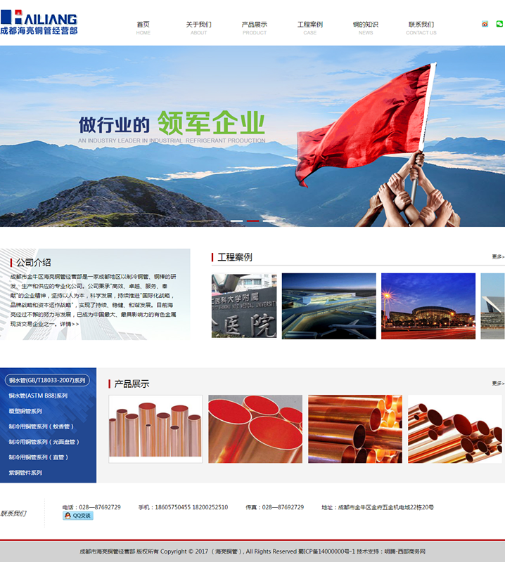 客戶概況:成都市金牛區(qū)海亮銅管經(jīng)營部是一家成都地區(qū)以制冷銅管、銅棒的研發(fā)、生產(chǎn)和供應(yīng)的專業(yè)化公司。公司秉承"高效、卓越、服務(wù)、奉獻(xiàn)"的企業(yè)精神,堅(jiān)持以人為本,科學(xué)發(fā)展,持續(xù)推進(jìn)"國際化戰(zhàn)略,品牌戰(zhàn)略和資本運(yùn)作戰(zhàn)略",實(shí)現(xiàn)了持續(xù)、穩(wěn)健、和諧發(fā)展。目前海亮經(jīng)過不懈的努力與發(fā)展,已成為中國最大、最具影響力的有色金屬現(xiàn)貨交易企業(yè)之一。