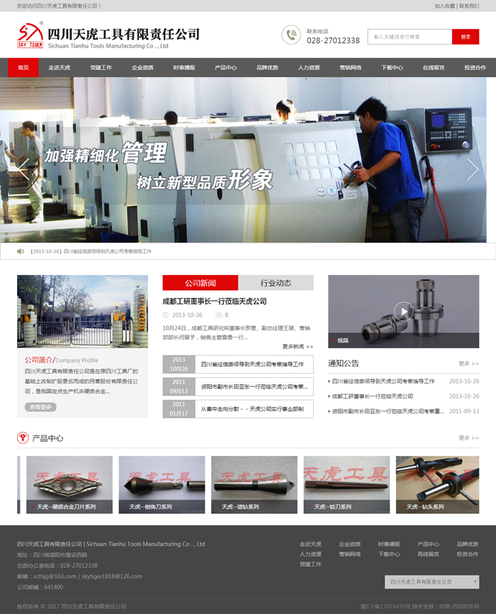 客戶概況:四川天虎工具有限責(zé)任公司是在原四川工具廠的基礎(chǔ)上改制擴(kuò)股更名而成的民營(yíng)股份有限責(zé)任公司,是我國(guó)定點(diǎn)生產(chǎn)機(jī)夾硬質(zhì)合金可轉(zhuǎn)位刀具的中二型企業(yè)。公司位于四川省簡(jiǎn)陽(yáng)市建設(shè)西路,距省會(huì)成都五十七公里,占地面積8萬(wàn)平方米,總資產(chǎn)2億元,現(xiàn)有正式職工450余人,其中工程技術(shù)和專(zhuān)業(yè)管理人員占在冊(cè)職工的20%以上,中、高級(jí)技術(shù)人員50余人