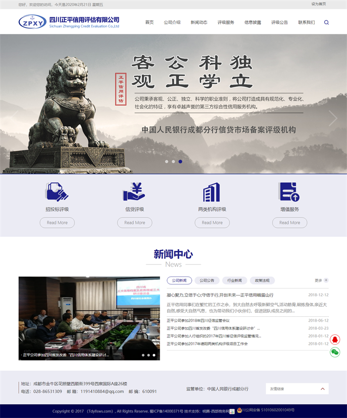 客戶概況:四川正平信用評估有限公司是在四川省工商行政管理局登記的,注冊資本1000萬元,以獨立的第三方形式組建的專業(yè)信用評估機構(gòu)。公司辦公地址位于四川省成都市金牛區(qū)花照壁西順街399號西宸國際A座,主要服務產(chǎn)品有:信用評級服務、企業(yè)征信服務、咨詢服務以及培訓服務等。公司現(xiàn)有信用管理師7人,經(jīng)濟師2人,注冊會計師2人,會計人員5人,證劵從業(yè)人員1人,法律顧問1人,為我公司的信用評級體系提供了有力的技術(shù)支持。