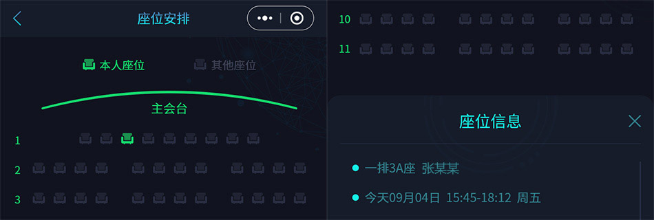 展示用戶在本次會議中的座次安排。以及開會現(xiàn)場的線路引導,以室內vr或圖示等方式呈現(xiàn);